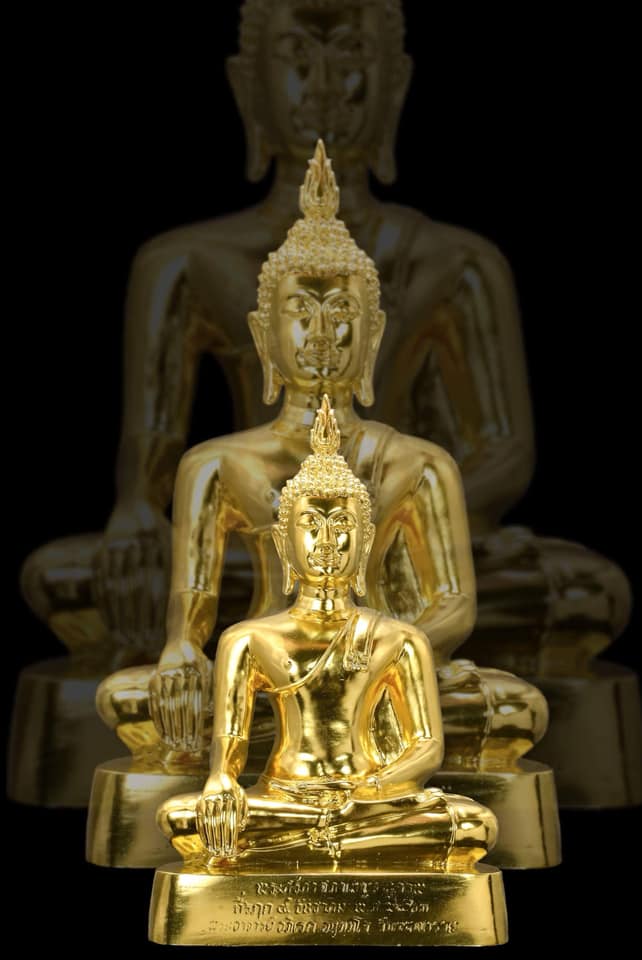 แถวที่ 3 พระศรีศาสดาเบญจานุภาพ ทั้งปิดทองและรมมันปู