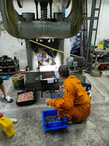 พระอาจารย์แกะตกแต่งเก็บรายละเอียดของบล๊อกก่อนทำการปั้มจริง และตรวจงานอย่างละเอียดทุกขั้นตอน
