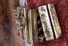 ชนวนทองแดงนอก และชนวนเนื้อระฆังเก่าที่หล่อไว้ในงานพิธีหล่อพระบูชารูปเหมือน 12 นิ้ว เมื่อวันที่ 10 เมษายน 2554
