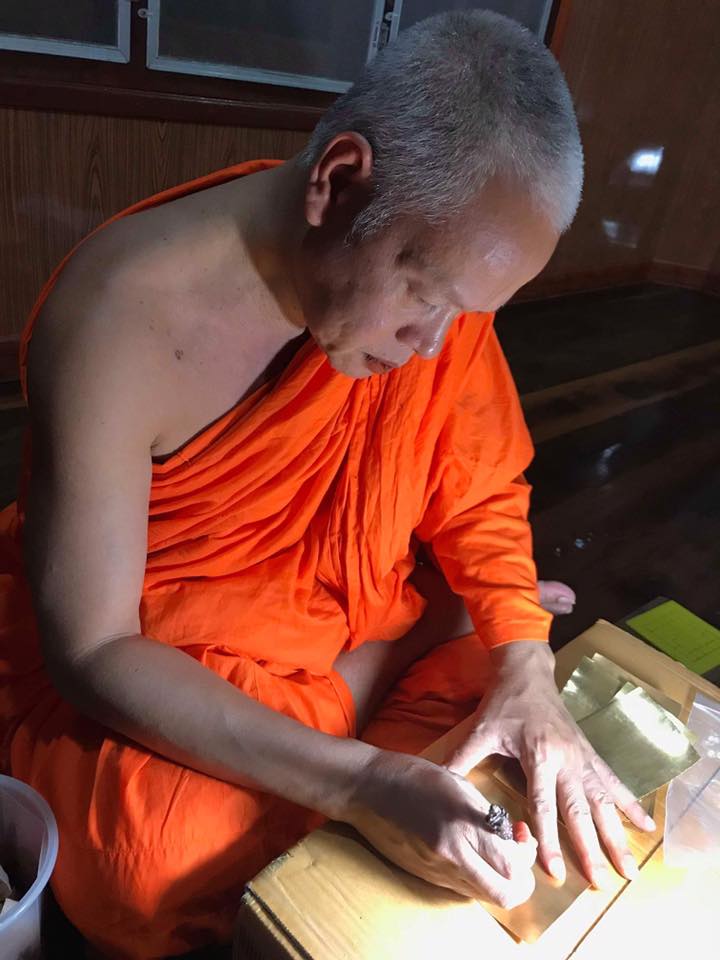 หลวงพ่อพระมหาสุรศักดิ์ เมตตาจารแผ่นยันต์ชนวนทองคำ และเงิน สำหรับเทหล่อเหรียญ " เจ้าสัว " วัดประดู่พระอารามหลวง