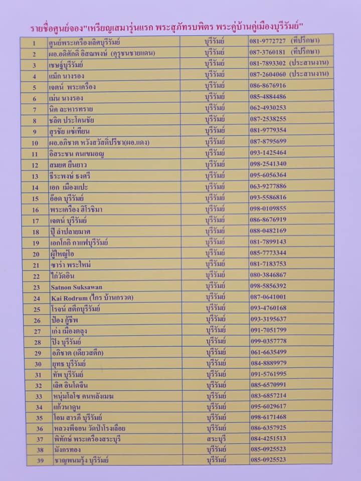 ขอขอบคุณ ข้อมูลโดย :: ศูนย์พระเครื่องเลิศ บุรีรัมย์ , คุณวิชาญ ครุฑรัมย์ , เอก เมืองแปะ และคุณเชษฐ์ หอมดวง ที่เอื้อเฟื้อข้อมูล