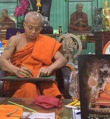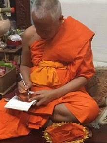 ร.ต.อ.นัชศรุฒจม์พล ท้าวปัญณพัฒม์ (ผู้กองอุ้ย) รับมาจากอาจารย์สมจิตร เทียนจันทร์ (อ.เฒ่า สุพรรณ) ศิษย์หลวงพ่อกวย (แผ่นจารชนวนลายมือหลวงพ่อกวย)