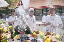 เวลา 10.00 น. พระสงฆ์จำนวน 9 รูป เจริญพระพุทธมนต์ , เวลา 11.00 น. ถวายภัตราหารเพล พระสงฆ์ทั้งหมดวัด