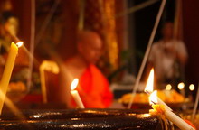 พระมหาสุรศักดิ์ อติสกฺโข จุดธูป เทียน บูชาพระประธานในโบสถ์ (หลวงพ่อใหญ่) และจุดเทียนชัย เวลา 19.19 น.